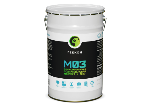 Геккон М03 - Однокомпонентная полиуретановая мастика, отверждающаяся под воздействием естественной влажности воздуха с образованием бесшовной и прочной резиноподобной пленки на различных изолируемых поверхностях. После полимеризации имеет постоянную эластичность и химическую стойкость.